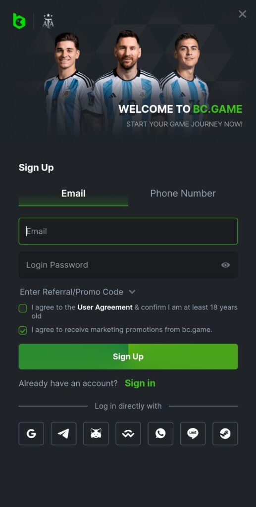 - Account management. Log in with your existing BC.Game credentials or sign up right from the mobile site if you’re new to start your gaming journey.
