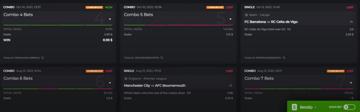 - Combo bets (accumulators). This is comprised of more than one independent outcome from different events. All the selected outcomes shall be correct for one to win, and in their case where one of them is not correct, it shall make the bet lose. The winnings shall represent the stake multiplied by the combined odds of all events in the combo.