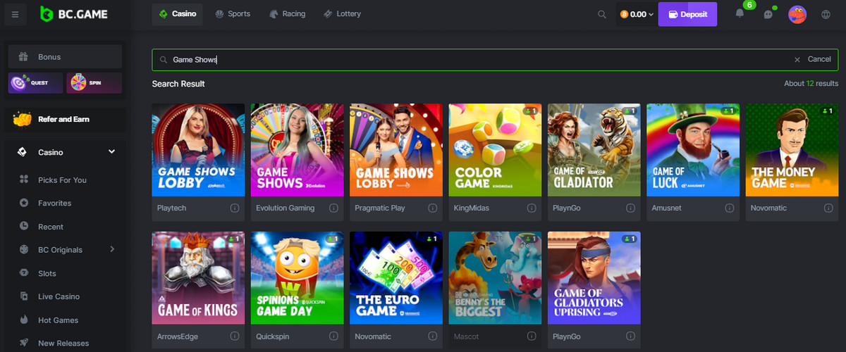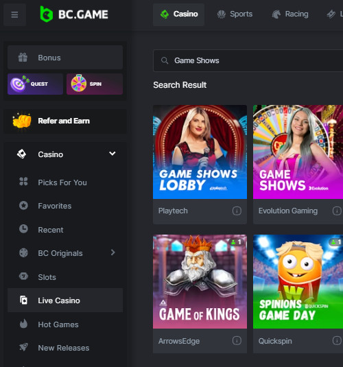 1. Game time. Welcome to the club; you have made a deposit. You have found a deposit for your cryptocurrency, and now let the games begin. Automatically, after making a deposit, head straight to the BC.Game live casino sections and check the categories in there.