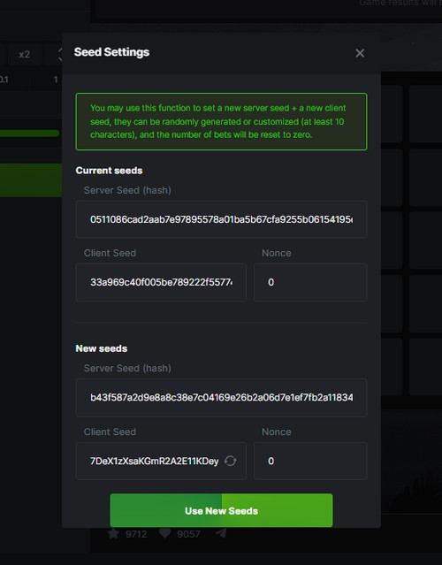 • Client Seed. Provided by the player’s browser, which can be changed to ensure the results are not predetermined.