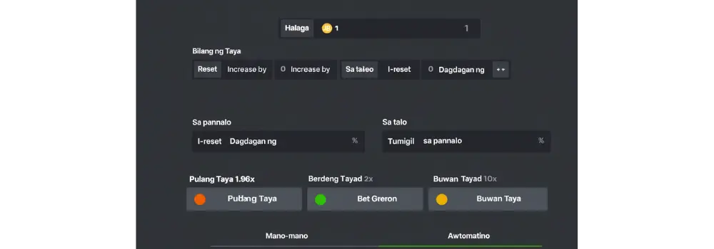 | Mga Espesyal na Tampok | Pinapayagan ng Trenball mode ang pagtaya sa mga hinulaang hanay ng multiplier (Pula, Berde, Buwan) |