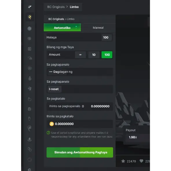 • Huminto sa panalo/talo . Magtakda ng mga limitasyon upang awtomatikong huminto sa pagtaya kung ang iyong mga panalo ay umabot sa isang tiyak na halaga o kung ang iyong mga pagkatalo ay lumampas sa isang paunang natukoy na limitasyon. Nakakatulong ito na pamahalaan ang iyong bankroll nang epektibo.