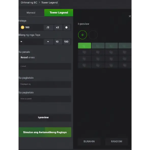 1. Layunin ng laro . Ang pangunahing layunin sa Tower Legend ay mag-navigate sa isang tore sa pamamagitan ng pagpili ng mga tamang tile nang hindi naaapakan ang mga mali. Ang bawat tamang hakbang ay magdadala sa iyo ng mas mataas sa tore, na nagpapataas ng iyong mga potensyal na panalo.